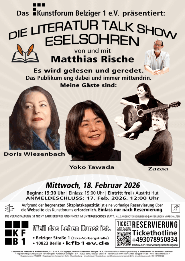 Aktuelle Termine: Literarischer Nachtsalon, Literatur Talk Show Eselsohren, Konzerte, Jazz,