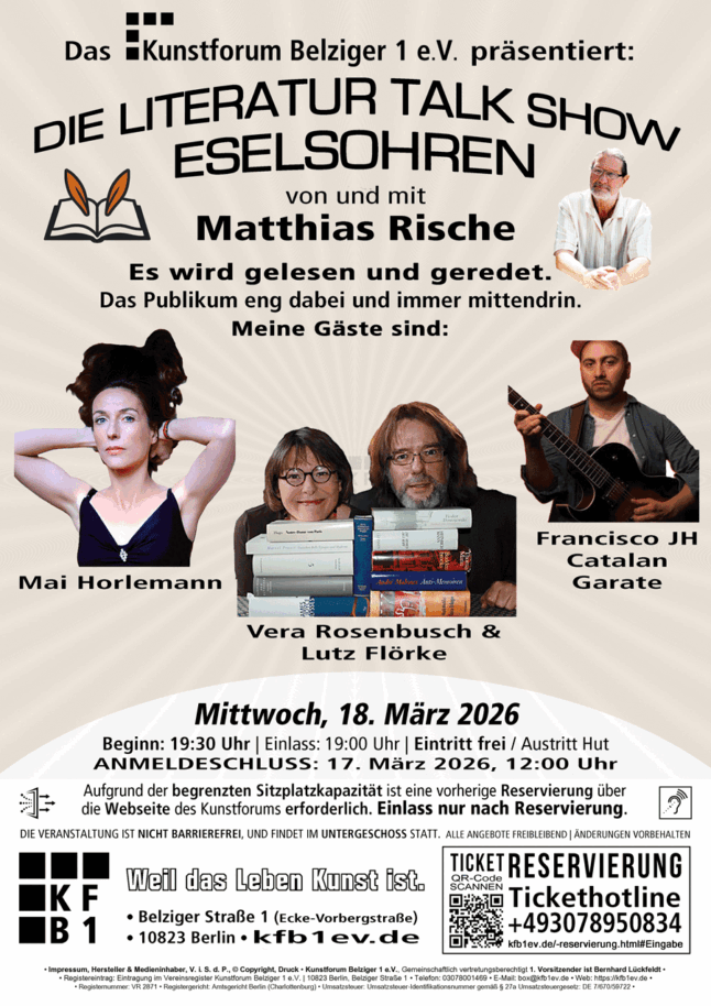 Aktuelle Termine: Literarischer Nachtsalon, Literatur Talk Show Eselsohren, Konzerte, Jazz,
